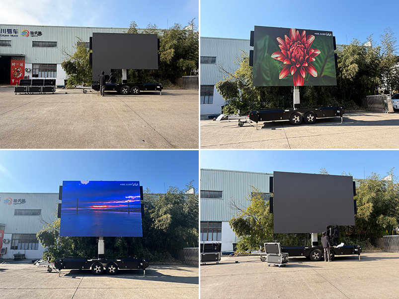 Safety and Load-bearing Guarantee: A hydraulic support system is activated simultaneously during the upgrade. Four sets of retractable support legs evenly distribute the overall load of the vehicle, and the screen can reach Grade 8 wind resistance after being raised, fully complying with outdoor operation safety standards. Notably, in the unexpanded state, this LED advertising trailer can be freely folded and lifted, without affecting road passage and on-site parking, and is suitable for use in different scenarios.