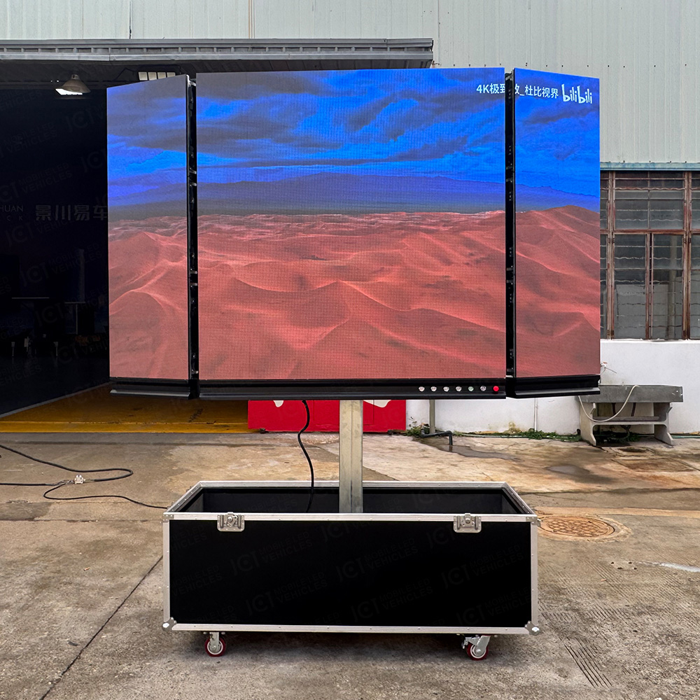 Temporary Events: Outdoor product launches, open-air concerts, live sports broadcasts, and information displays – quickly set up custom visual stage backdrops; Commercial Promotions: Street marketing campaigns, mall outdoor promotions, mobile exhibition vehicles – creating dynamic visual highlights to boost brand visibility; Emergency & Public Services: Disaster prevention awareness, temporary medical guidance, community emergency alerts – delivering critical information promptly; Outdoor Venues: Tourist attraction interpretation, campsite entertainment, construction site safety training – adaptable to diverse needs and enhancing practicality.